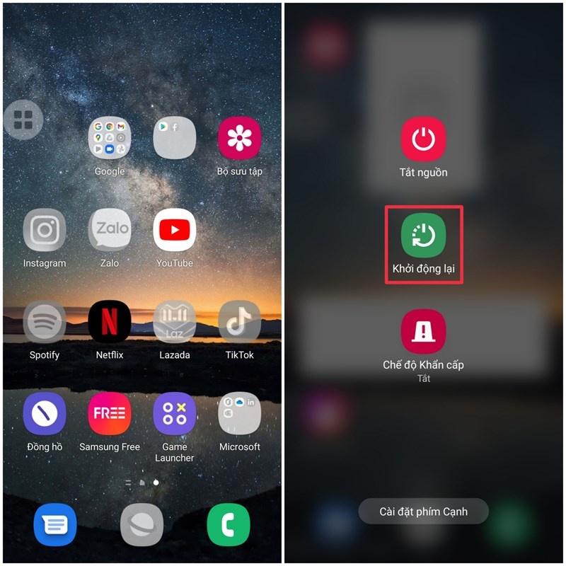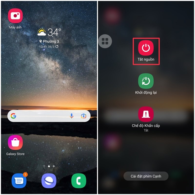 - Khởi động lại điện thoại: Đầu tiên, để tắt chế độ an toàn trên Android, bạn hãy khởi động lại thiết bị bằng cách nhấn giữ Nút nguồn -> Bấm chọn Restart hoặc Power off and Restart.