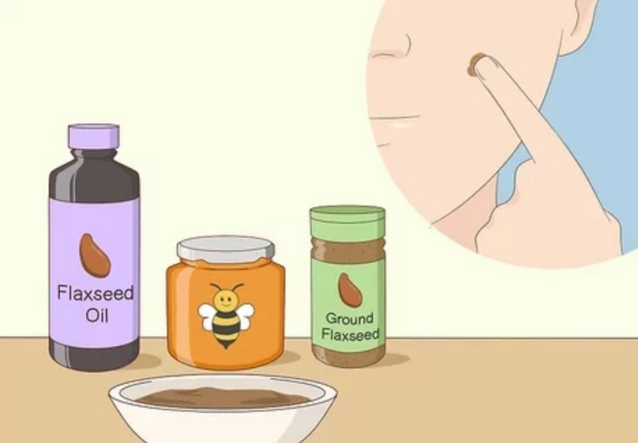 Trong dân gian, hạt lanh là nguyên liệu có tác dụng thần kỳ trong việc điều trị nhiều loại khuyết điểm trên da. Để xoá nốt ruồi, bạn trộn dầu hạt lanh với mật ong theo tỉ lệ 1:1 và cho 1 nhúm bột hạt lạnh vào hỗn hợp. Rồi sau đó, bạn thoa trực tiếp lên nốt ruồi và để khoảng 1 tiếng, xong rửa sạch. Thực hiện cách này 1 lần/ngày trong vòng 1 tuần.