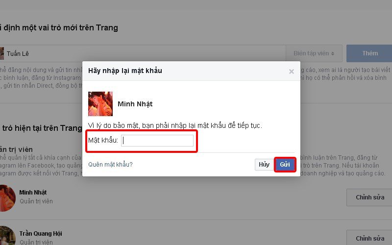 Bước 5: Cuối cùng, bạn nhập mật khẩu Facebook và bấm chọn Gửi là hoàn thành.
