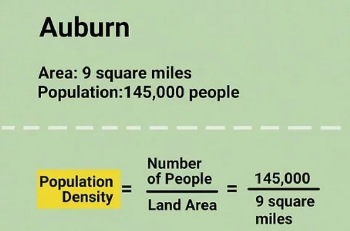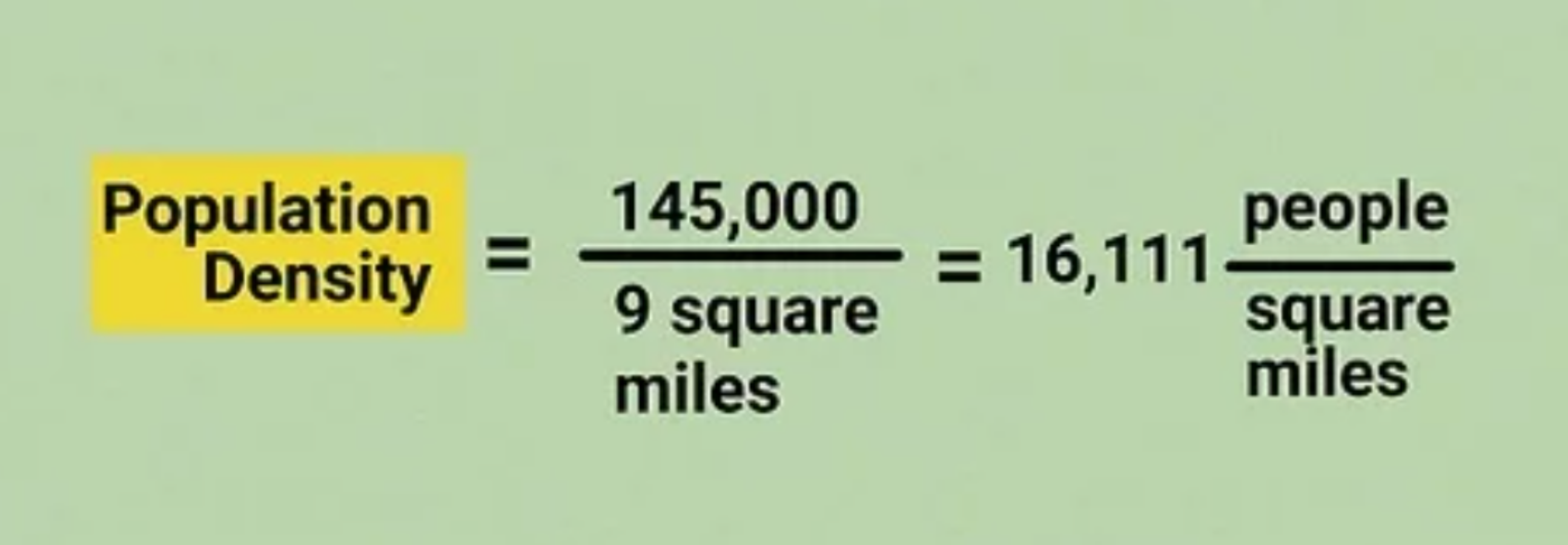 Xét theo ví dụ trên, bạn lấy 8.244.400 : 2095 sẽ có mật độ dân số là 3.935 người/kilômét vuông.