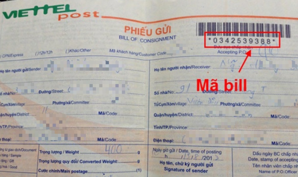 Ví dụ trên kênh bán hàng Shopee Mã vận đơn Viettel Post tại Việt Nam sẽ bắt đầu bằng kí tự VTP
