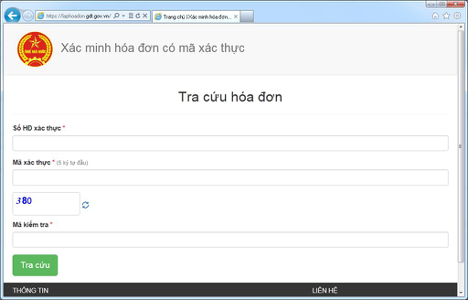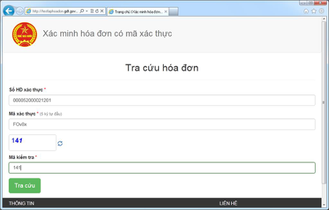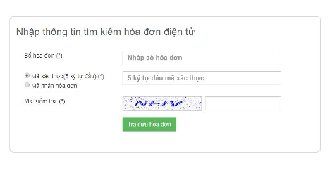 Bước 2: Nhập những thông tin cần thiết về hóa đơn như: mã kiểm tra, mã xác thực (gồm có 5 ký tự đầu), số hóa đơn xác thực. Sau đó chọn mục tra cứu.