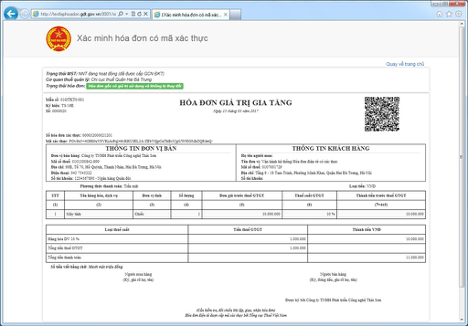 Bước 3: Trên màn hình sẽ hiển thị thông tin của hóa đơn có giá trị pháp lý và thông tin hóa đơn này có được sử dụng để kê khai thuế hay không.