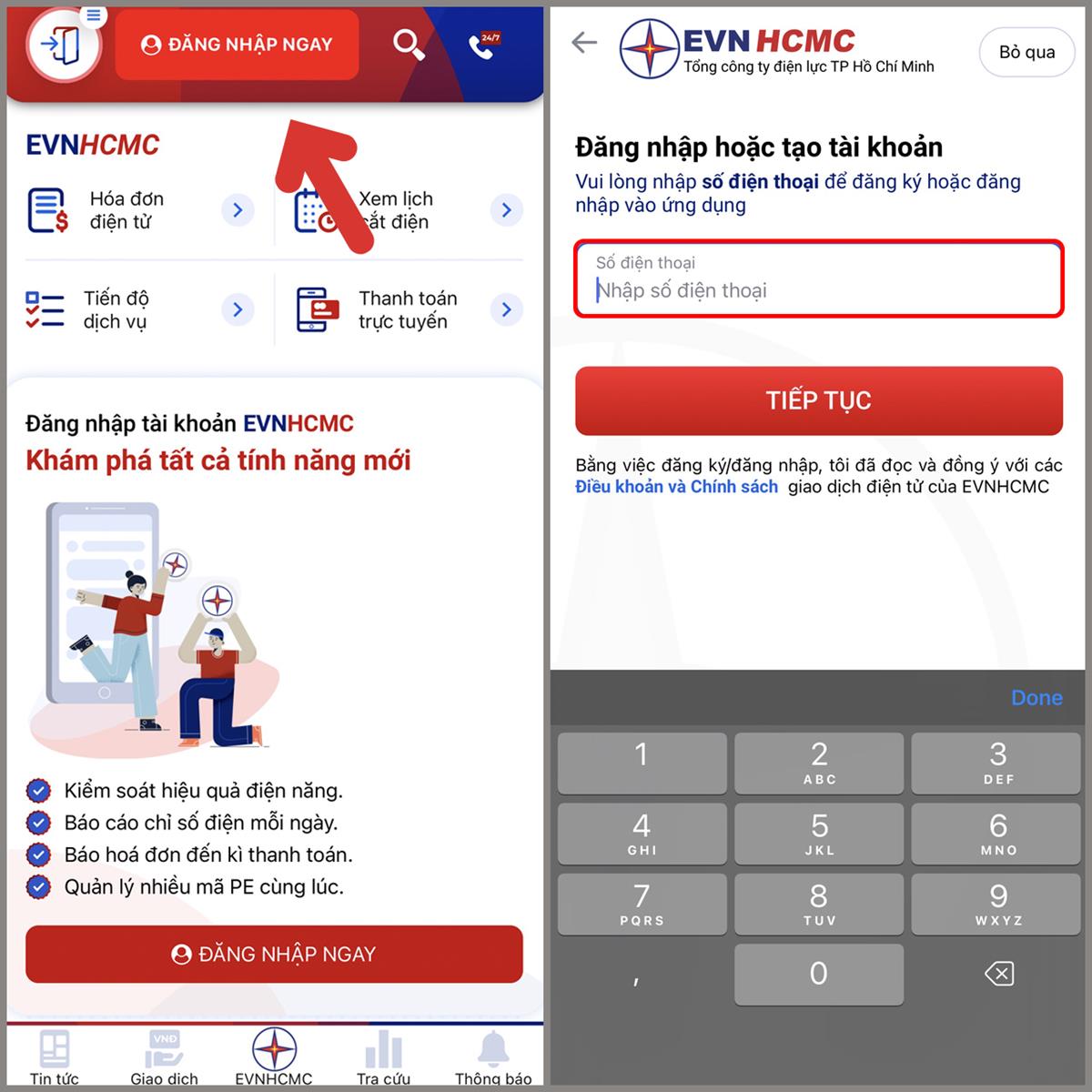 Bước 1: Truy cập vào App Store và Tải ứng dụng EVN CSKH tùy theo khu vực mà bạn sinh sống > Vào ứng dụng và chọn ĐĂNG NHẬP NGAY > Nhập thông tin để đăng nhập.