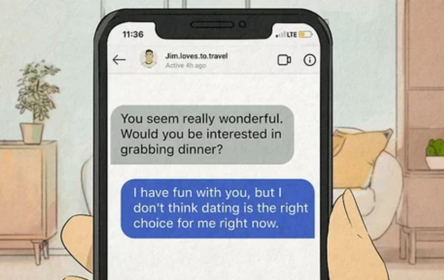 - “Em rất vui khi nhận được lời mời, nhưng em không có hứng thú với chuyện hẹn hò ngay lúc này.”