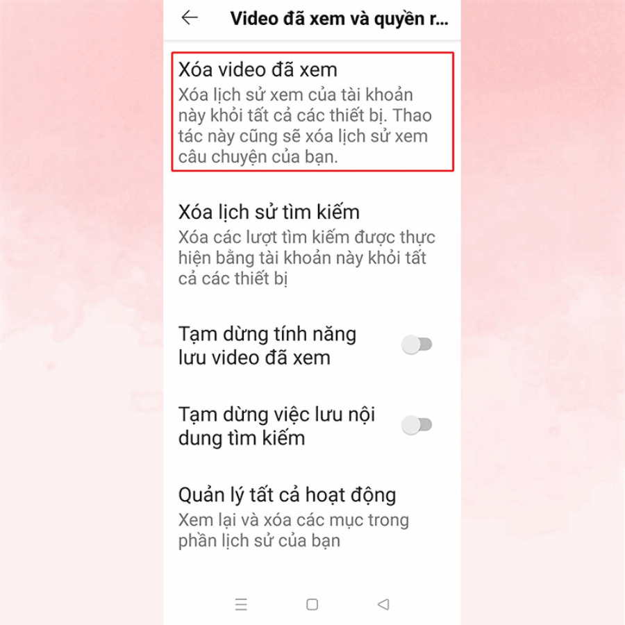 Bước 4: Kế đó, bạn chọn mục Xoá video đã xem -> Chọn XOÁ VIDEO ĐÃ XEM.