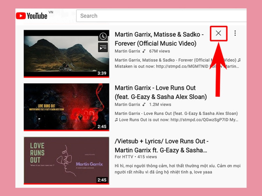 Bước 2: Sau đó, bạn vào biểu tượng dấu X để xoá từng video đã xem.