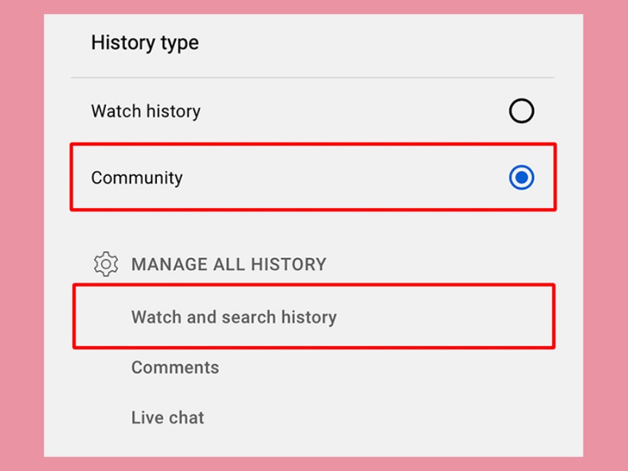 Bước 3: Kế đó, bạn hãy chọn mục Community -> Nhấn vào Watch and serch history.