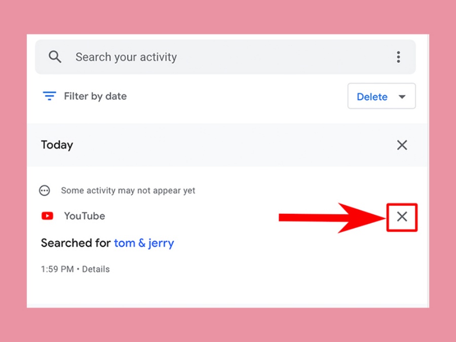 Bước 4: Khi đó, tại giao diện mới, bạn chọn vào biểu tượng dấu X để xoá từng cụm từ đã tìm kiếm.