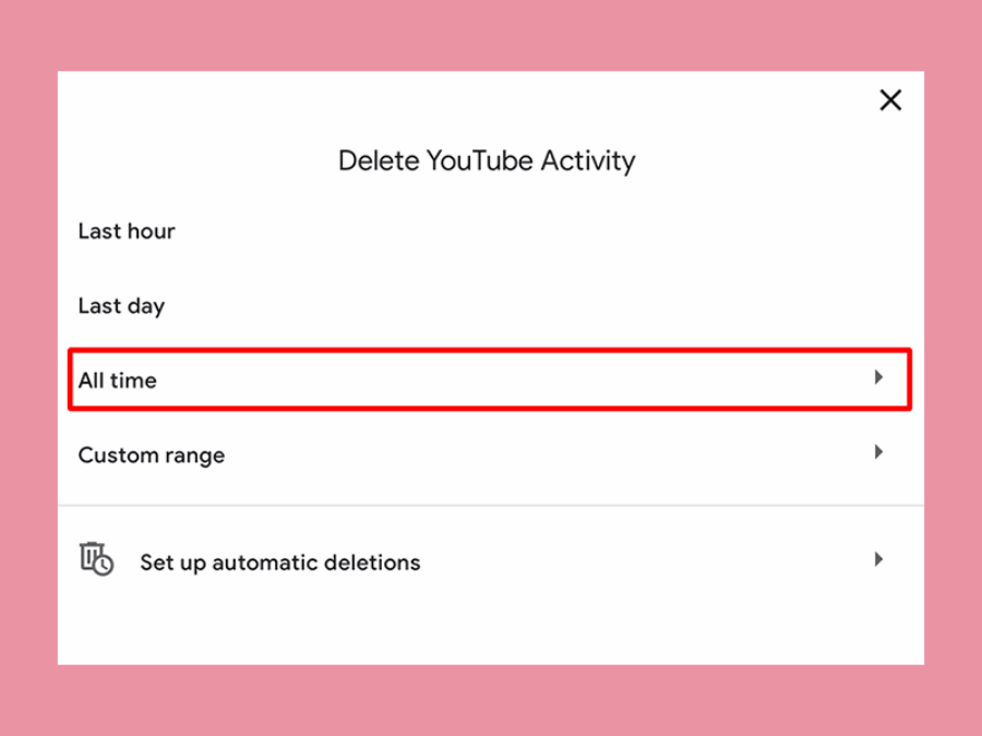 Bước 6: Cuối cùng, bạn nhấn chọn mục All time -> Bấm Delete để hoàn tất.