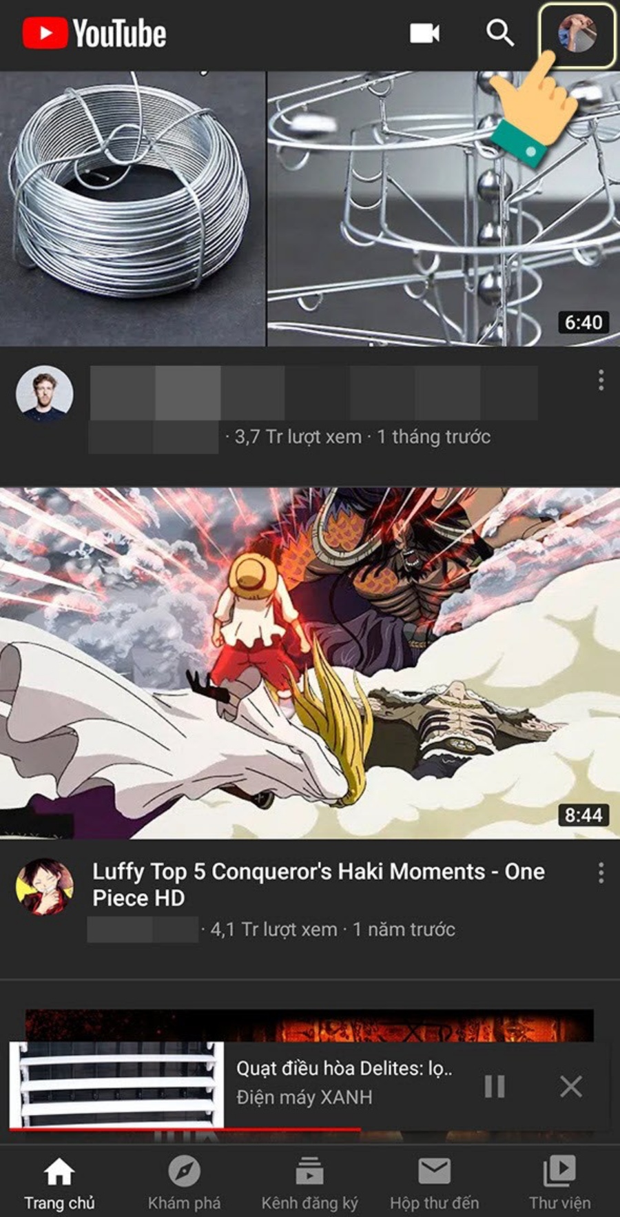 Bước 1: Đầu tiên, bạn mở ứng dụng YouTube trên điện thoại Android -> Nhấn vào biểu tượng Thư viện.