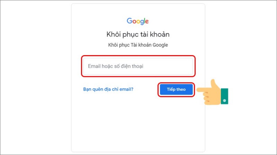 Bước 2: Sau đó, bạn nhập tài khoản muốn khôi phục -> Nhấn chọn Tiếp theo.