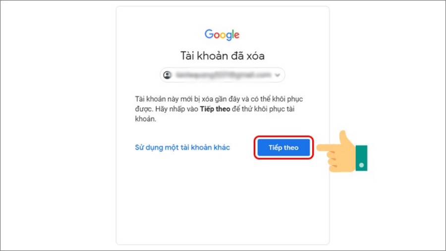 Bước 3: Kế đó, bạn bấm Tiếp theo để thử khôi phục tài khoản.