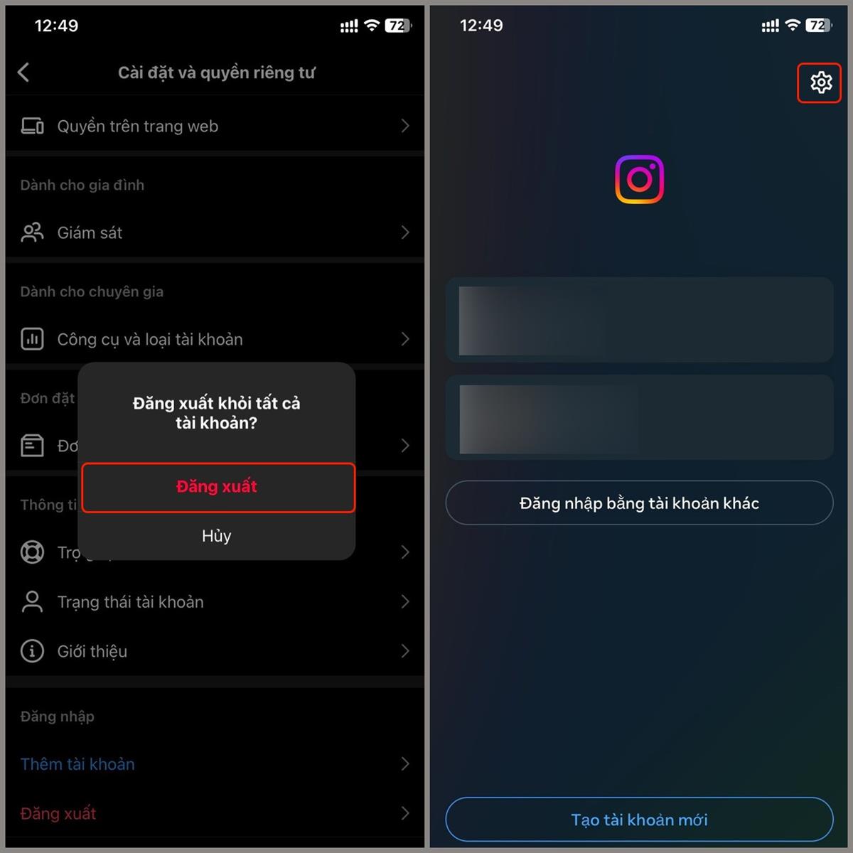 Hướng dẫn cách xóa tài khoản Instagram đã lưu trên điện thoại