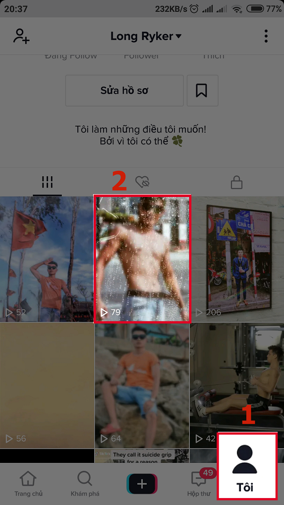 Bước 1: Đầu tiên, bạn mở ứng dụng TikTok trên điện thoại -> Nhấn chọn Tôi -> Ấn vào video mà bạn muốn xóa.