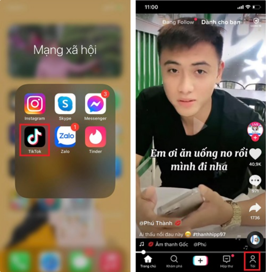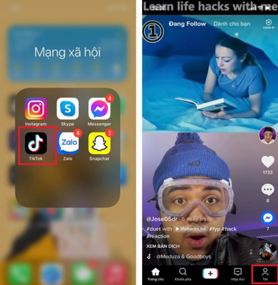 Bước 1: Đầu tiên, bạn truy cập vào ứng dụng TikTok -> Bấm chọn mục Tôi ở bên dưới màn hình.