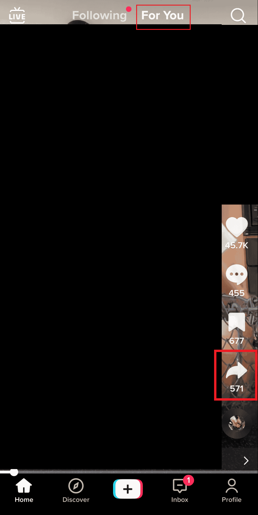 Bước 3: Tiếp theo, bấm chọn vào biểu tượng chia sẻ từ video TikTok mong muốn mà bạn muốn đăng lại.