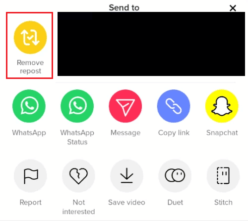 Để xóa bài đăng lại trên TikTok, bạn chỉ cần nhấn vào nút Chia sẻ một lần nữa, sau đó nhấp vào nút “xóa bài đăng lại”, sau đó một cửa sổ bật lên sẽ xuất hiện, hãy tiếp tục và nhấn vào “xóa” để xóa bài đăng lại của bạn Tài khoản TikTok.