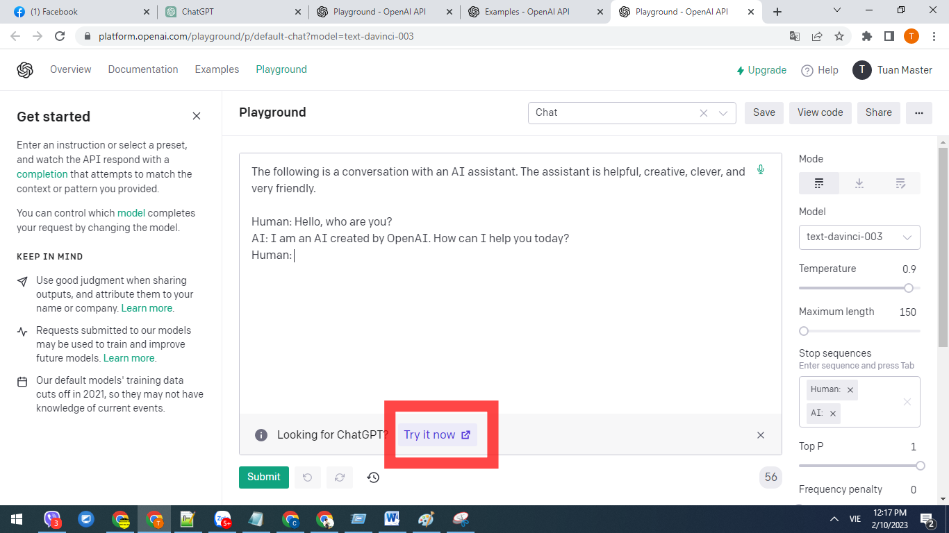 Bạn có thể click vào "Try It Now" để chuyển qua chát trực tiếp với ChatGPT