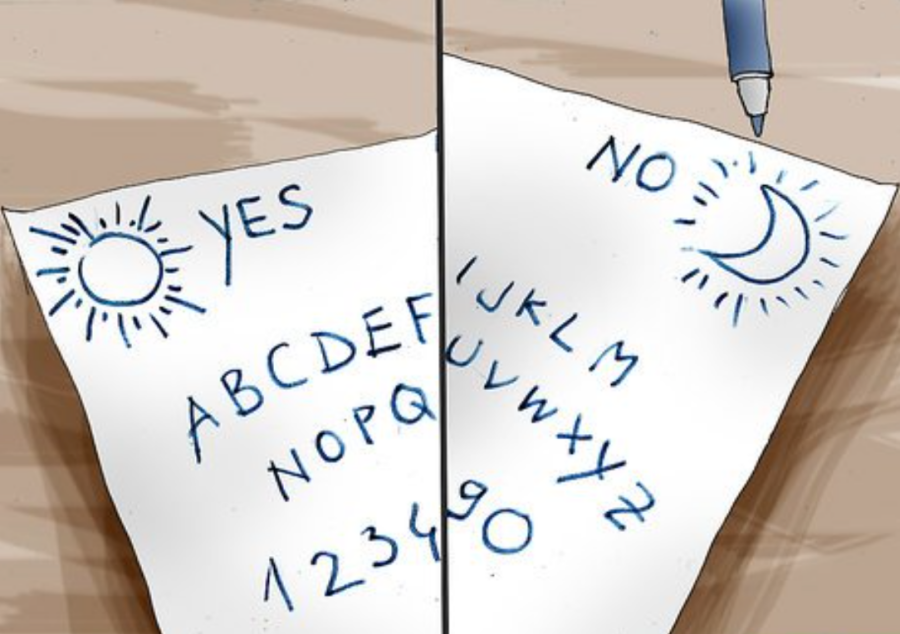 Bước 7: Sau khi hoàn thành các bước trên là bạn đã làm xong bàn cầu cơ rồi đấy. Bây giờ hãy chuẩn bị tinh thần trò chuyện với linh hồn qua tấm bảng cầu cơ này nhé!