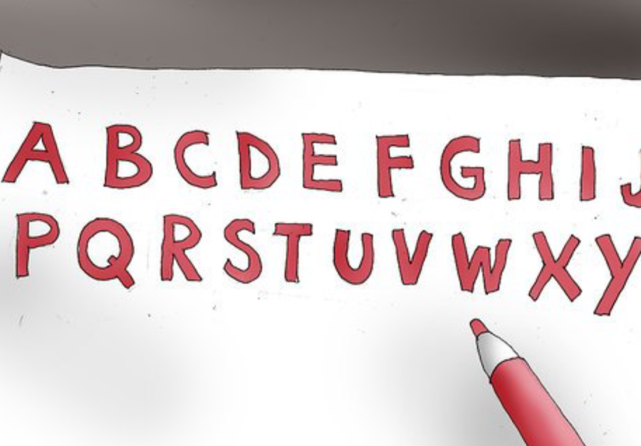 Bước 1: Đầu tiên, bạn viết ra các chữ cái thành 1 hoặc 2 hàng sao cho đủ lớn để có thể đọc được.