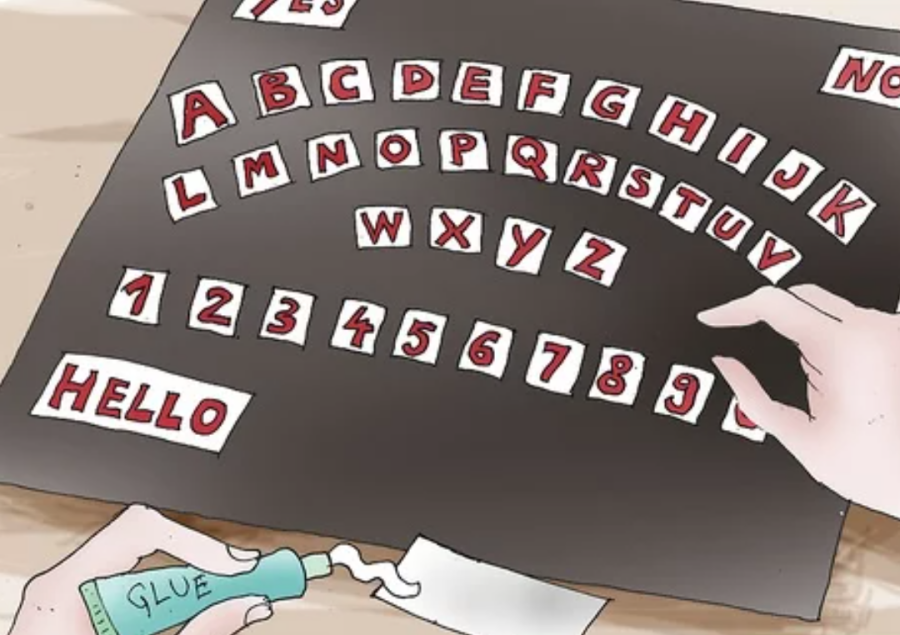 Bước 1: Đầu tiên, bạn dùng 1 tờ giấy khổ lớn, ghi lên đó các chữ cái, chữ số từ 0 đến 9, các từ “Yes” (có), “No” (không), “Hello” (xin chào) và “Goodbye” (tạm biệt).