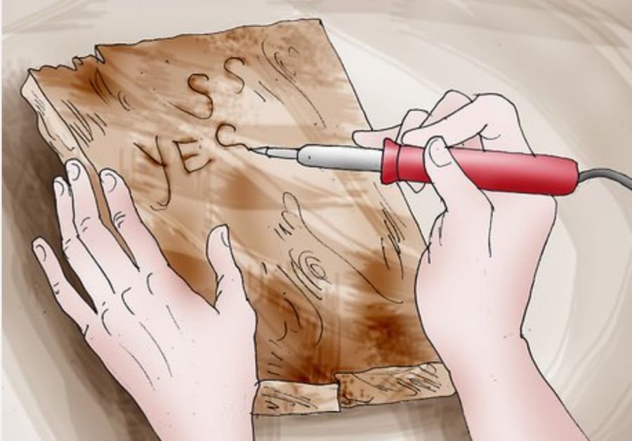 Bước 5: Dùng mỏ hàn khắc hoạ theo mẫu thiết kế