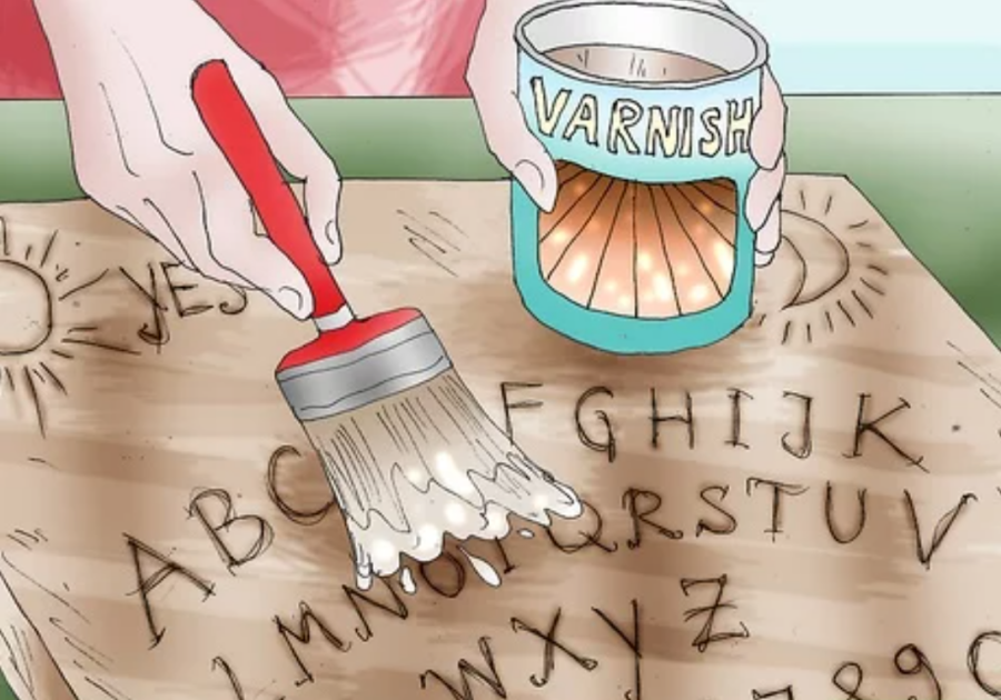 Đầu tiên, để có được một bảng cầu cơ bằng gỗ láng mịn thì bạn cần quét sơn, véc-ni hoặc hỗn hợp phủ bóng khác và mỏ hàn (mũi hàn dùng để khắc chữ hoặc tương tự), bút chì và giấy.