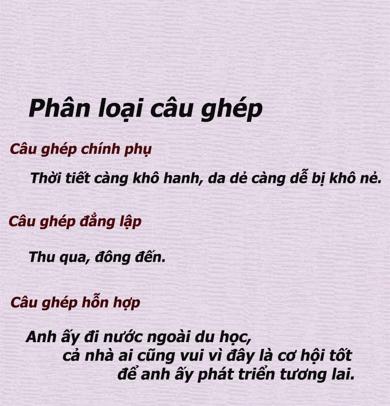 2. Các loại câu ghép được sử dụng trong tiếng Việt