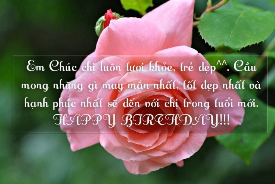 Sinh nhật vui vẻ chị yêu nhé! Chúc chị thêm tuổi mới nhiều niềm vui, mãi xinh gái, luôn mạnh khoẻ, luôn thành công trong cuộc sống và những dự định sắp tới nhé.