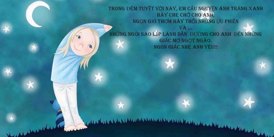 Ngoài bầu trời kia, những ngôi sao lấp lánh vẫn đang tỏa sáng và gió vẫn không ngừng thổi. Dường như vạn vật đang chờ thiên thần chính là em nhẹ nhàng tựa đầu vào gối và nhắm mắt ngủ đó. Chúc em ngủ thật ngon nhé cô bé đáng yêu của anh.