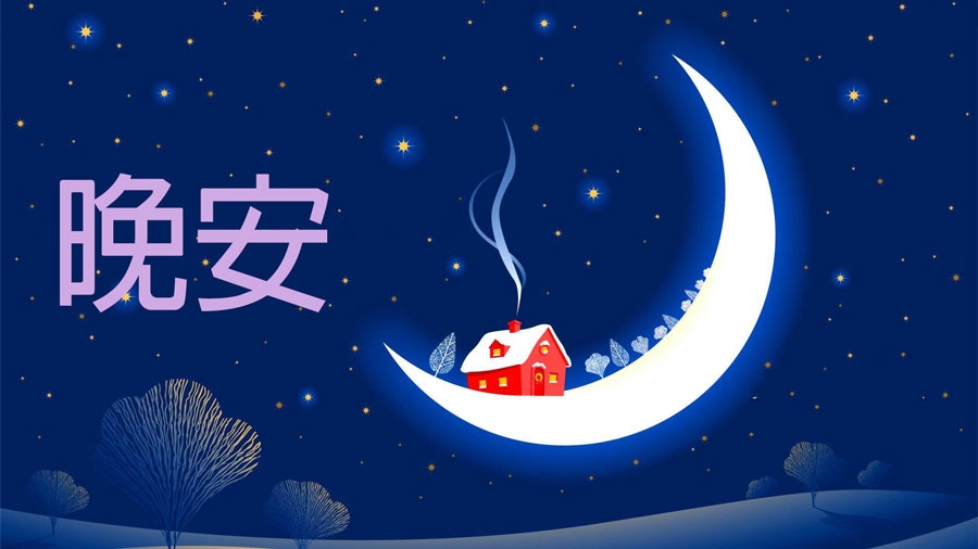 / Shēnyè, nǐ shuì dé hǎo ma? Yuàn yuèliàng zài chuāng qián shǎnyào; xīngxīng yī diǎndiǎn, nǐ huì dài zhe wéixiào rù shuì. zhù fú nǐ, gěi nǐ yī gè tián mì de yèwǎn. Wǎn’ān wǒ de péngyǒu /