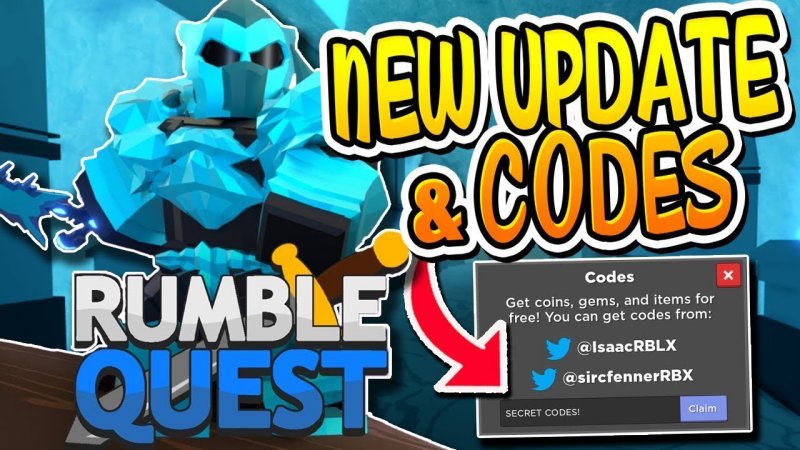 Code Rumble Quest là các mã quà tặng được sử dụng trong trò chơi trên nền tảng Roblox, được nhà sản xuất phát hành. Khi nhập những mã này, các game thủ sẽ nhận được nhiều quà tặng hấp dẫn như tiền vàng, vũ khí, trang bị để nâng cấp nhân vật trở nên mạnh mẽ hơn.