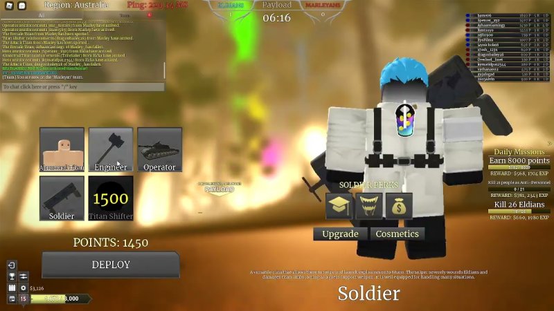 Titan Warfare là một trò chơi PVP quy mô lớn, đưa người chơi vào cuộc chiến giữa hai phe Marleyans và Eldians. Với nhiều chế độ chơi, game mang lại trải nghiệm đa dạng và tăng cường tính cạnh tranh. Khi lên cấp, người chơi sẽ mở khóa thêm nhiều tính năng mới cực thú vị!