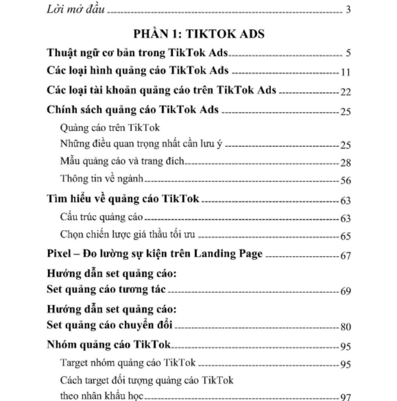 Cuốn sách này ra đời giúp bạn hiểu bản chất từ A – Z về cách làm content TikTok, landing page, hiểu thuật toán phân phối, cách lên camp và tối ưu quảng cáo, cuối cùng để bạn không phải mất hàng triệu đến chục triệu đồng cho 1 khóa học, mà vẫn tự lên camp đạt hiệu quả cao nhất.