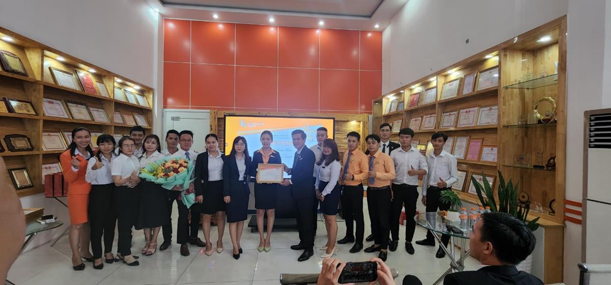 Đặc biệt, Sàn Thành Phố Mới còn được vinh danh bởi đạt kinh doanh xuất sắc nhất toàn hệ thống trong tháng 7/2022. Thành tích vượt trội này là minh chứng thuyết phục cho chiến lược tiếp cận khách hàng hợp lý và sự đồng lòng, quyết tâm cao độ của tập thể Sàn Thành Phố Mới mà người dẫn đắt là nữ thuyền trưởng tài ba Lê Thị Hạnh (người đang nhận bằng khen) – quyền Giám đốc Sàn.