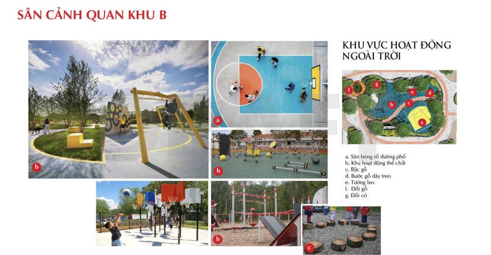 4. Tổ hợp vận động ngoài trời khô/ ướt cho trẻ em 8. Khu vực đa năng cho người lớn/ trẻ em 11. Sân bóng rổ phong cách đường phố