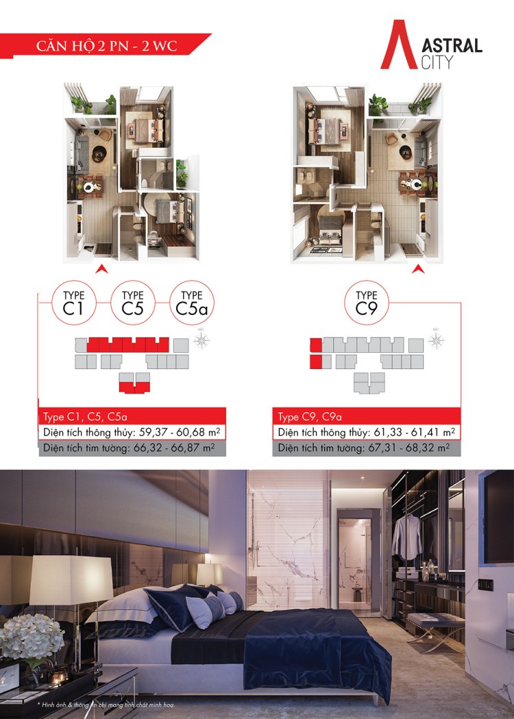 - Căn hộ 2PN + 2WC có diện tích từ 62m2 – 70m2 đặc biệt thích hợp với những gia đình 2 vợ chồng và 2 con nhỏ.