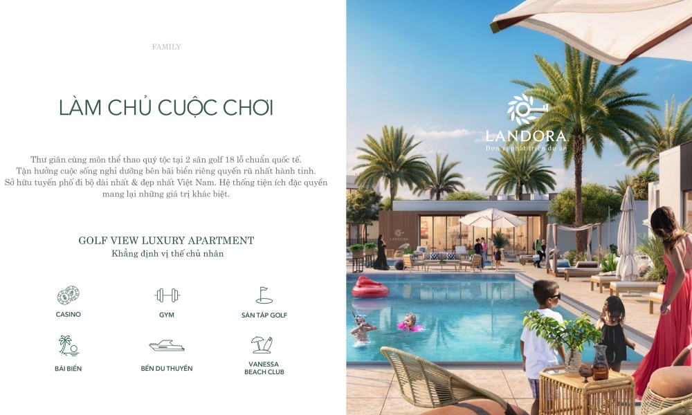 Golf View Luxury Apartment sở hữu vị trí độc nhất vô nhị trên thế giới – nằm giữa hai sân golf 18 lỗ chuẩn quốc tế, bên cạnh dòng sông Cổ Cò lịch sử và bãi biển đẹp nhất hành tinh.