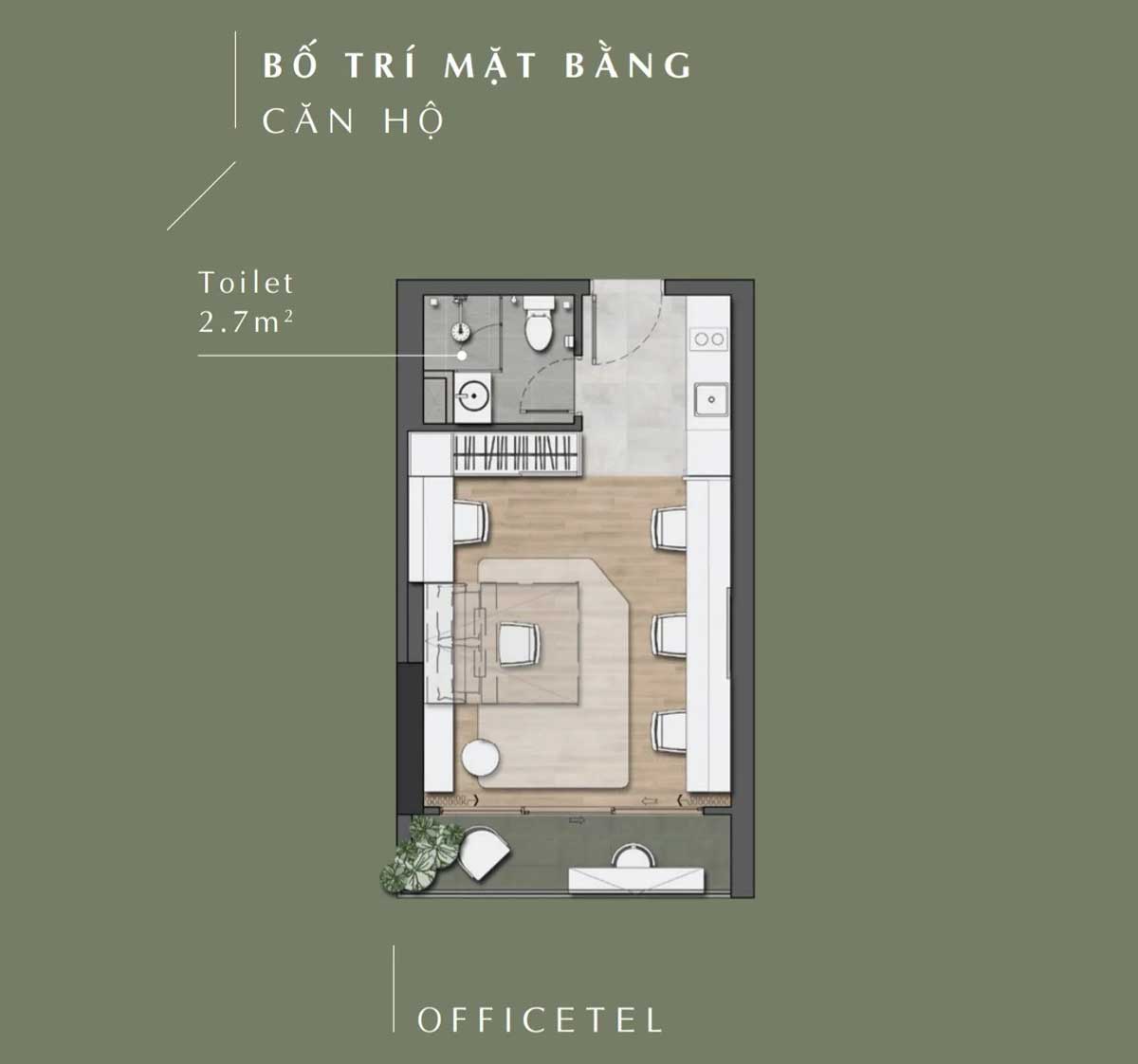 • Căn hộ Officetel: Từ 32m2 – 36m2 – 39m2 – 47m2 – 50m2