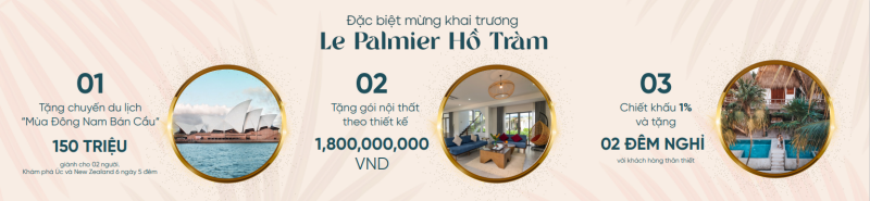 Nơi đây cũng là một trong những điểm ngắm bình minh đẹp nhất Đông Nam Á khi sở hữu tới hơn 300 ngày nắng đẹp, lá phổi xanh của khu vực (rừng nguyên sinh Bình Châu - Phước Bửu) và khu khoáng nóng Bình Châu. Vì vậy, khi đến với dự án Le Palmier Hồ Tràm, tin chắc rằng quý khách hàng có thể trải nghiệm những phút giây “rất thơ, rất tình, rất lãng mạn” mà khó có nơi nào có thể có được.