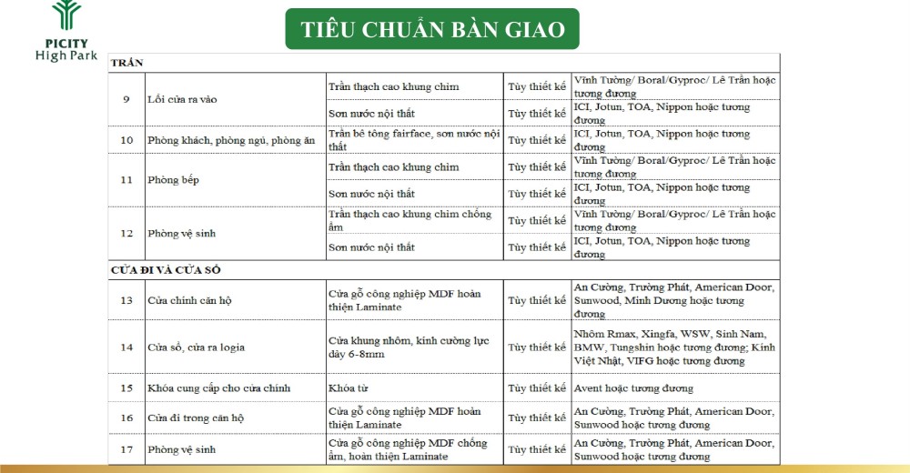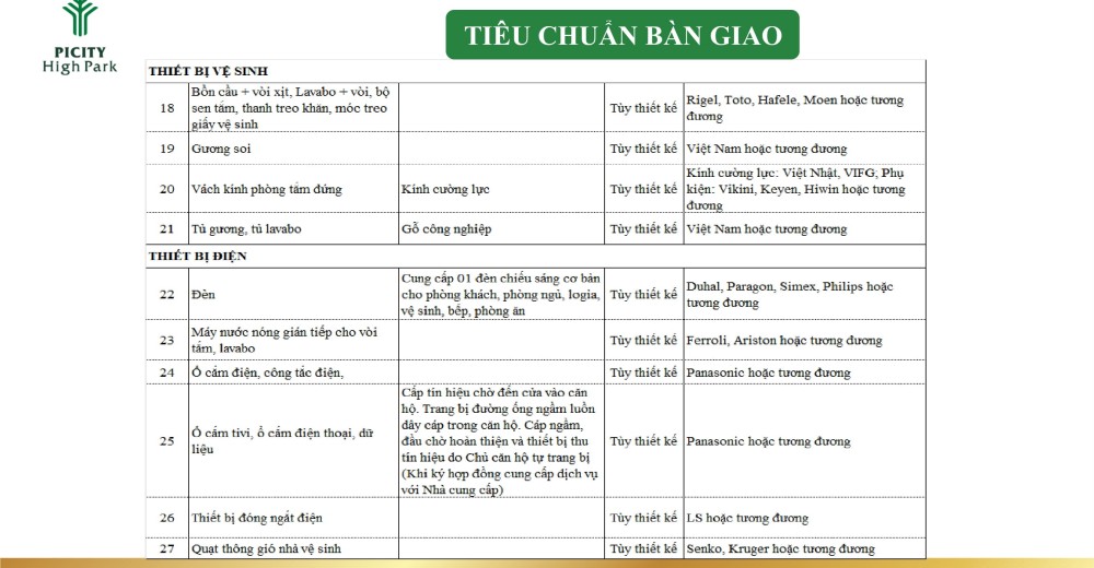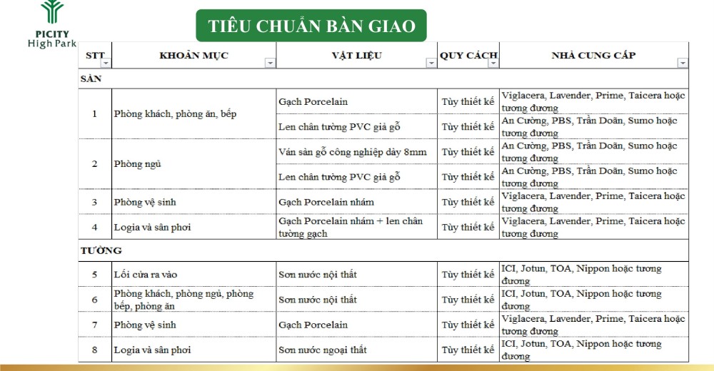 5. Bàn giao hoàn thiện cơ bản là bàn giao như thế nào? Là hình thức bàn giao KH sẽ có ngay căn hộ hoàn chỉnh với những nội thất cơ bản: hoàn thiện sơn tường, trần; hoàn thiện hệ thống điện; lát gạch, sàn, cung cấp thiết bị vệ sinh....(chi tiết theo bảng danh mục vật tư cung cấp đính kèm HĐ). Sau khi nhận nhà, KH chỉ cần mua thêm một số nội thất cơ bản là có thể sinh hoạt: máy lạnh, bếp, tủ, sofa...