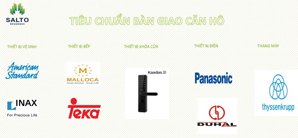 Dự án khu căn hộ Salto Residence sở hữu nhiều hệ thống tiện ích nội khu và ngoại khu chuẩn mực. Với hệ thống tiện ích đẳng cấp với hồ bơi, công viên xanh, công viên ven sông, siêu thị, phòng tập Gym & Yoga, phòng xông hơi Sauna, camera an ninhh, Thác nước tràn, hồ bơi vô cực, khu vui chơi trẻ em, quầy Bar, vườn BBQ, thư viện, sân chơi nước, phòng GYM, vườn mê cung thư giãn, Golfzoze,....