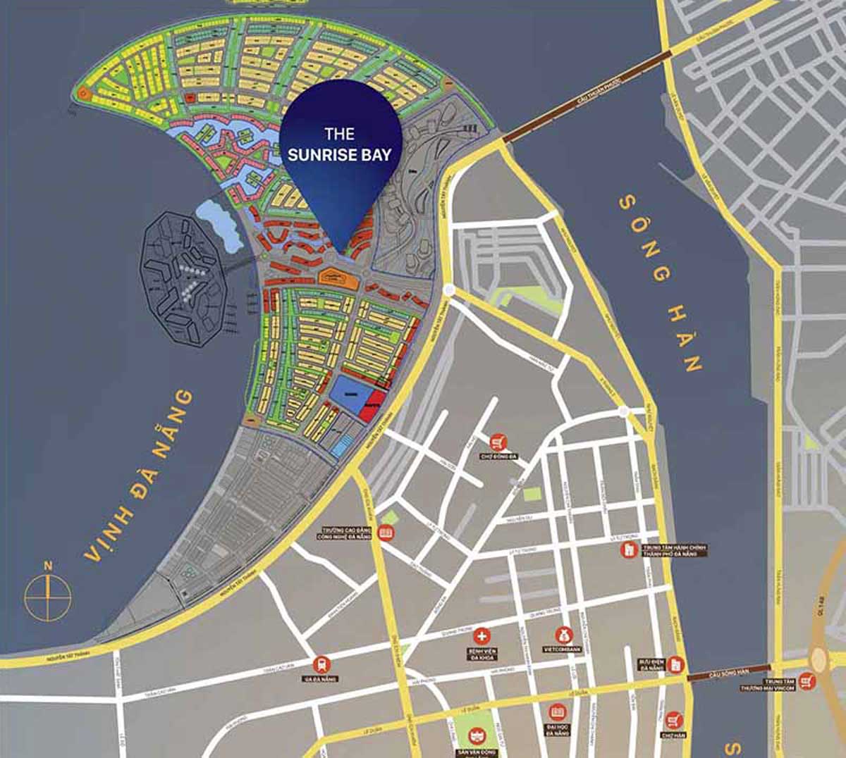 Khu đô thị The Sunrise Bay tọa lạc tại Đường Nguyễn Tất Thành, Phường Thanh Bình và Hải Phước, Quận Hải Châu, Thành Phố Đà Nẵng, nằm ngay góc mũi của bán đảo với nhìn ra biển trong xanh. Đây là vị trí “vàng” góp phần tăng thêm điểm cho dự án khi sở hữu những lợi thế về giao thông, tạo điều kiện thuận lợi cho việc đi lại và liên kết vùng