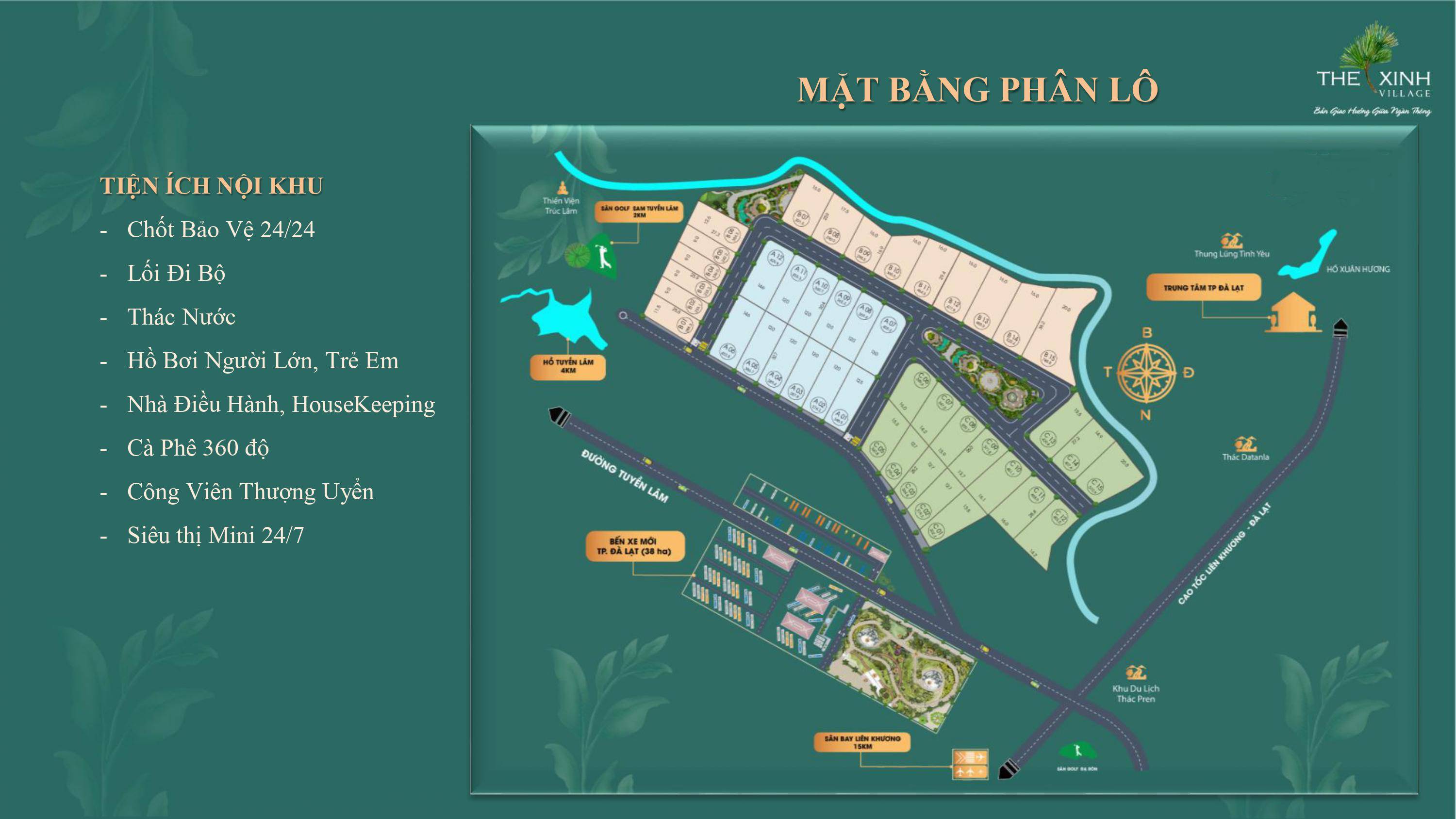 VỊ TRÍ VÀNG - ĐẤT LÀNH SINH TÀI LỘC: The Xinh Village toạ lạc ngay đường xuống cao tốc Liên Khương – Đà Lạt. Thuộc ranh giới địa chính của Phường 3 TP Đà Lạt và Xã Hiệp An, Đức Trọng. Liền kề sân Golf SAM Tuyền Lâm và khu du lịch Hồ Tuyền Lâm,
