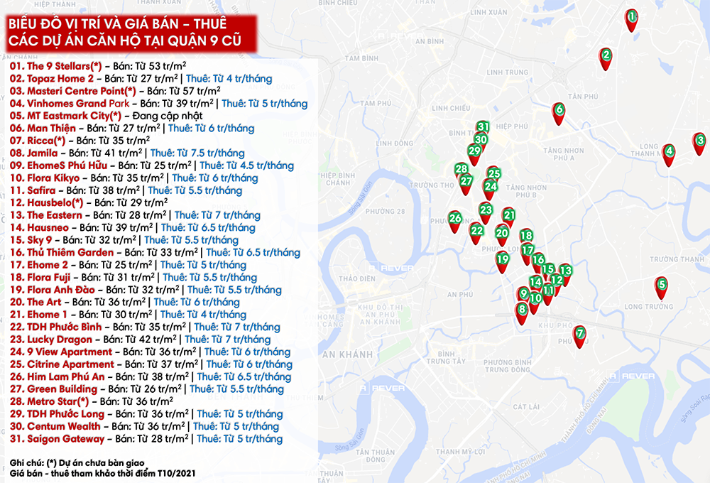 Đội ngũ Invert cập nhật mới tại thời điểm hiện tại về giá bán và giá cho thuê chi tiết các dự án căn hộ chung cư tại khu vực Quận 9 cũ (nay thuộc Thành phố Thủ Đức).