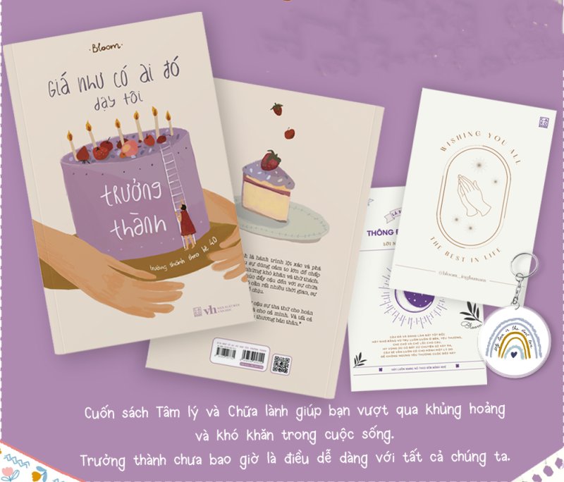 Cuốn sách “Giá như có ai đó dạy tôi trưởng thành – Trưởng thành theo hệ 4.0” của tác giả Bloom dành cho độc giả trẻ tuổi, đặc biệt là những người đang trải qua những khó khăn và cảm xúc tiêu cực trong cuộc sống. Tác giả giúp bạn thấy mình không đơn độc, có đủ sức mạnh đối diện với khó khăn và tự chữa lành cho bản thân để trưởng thành hơn.