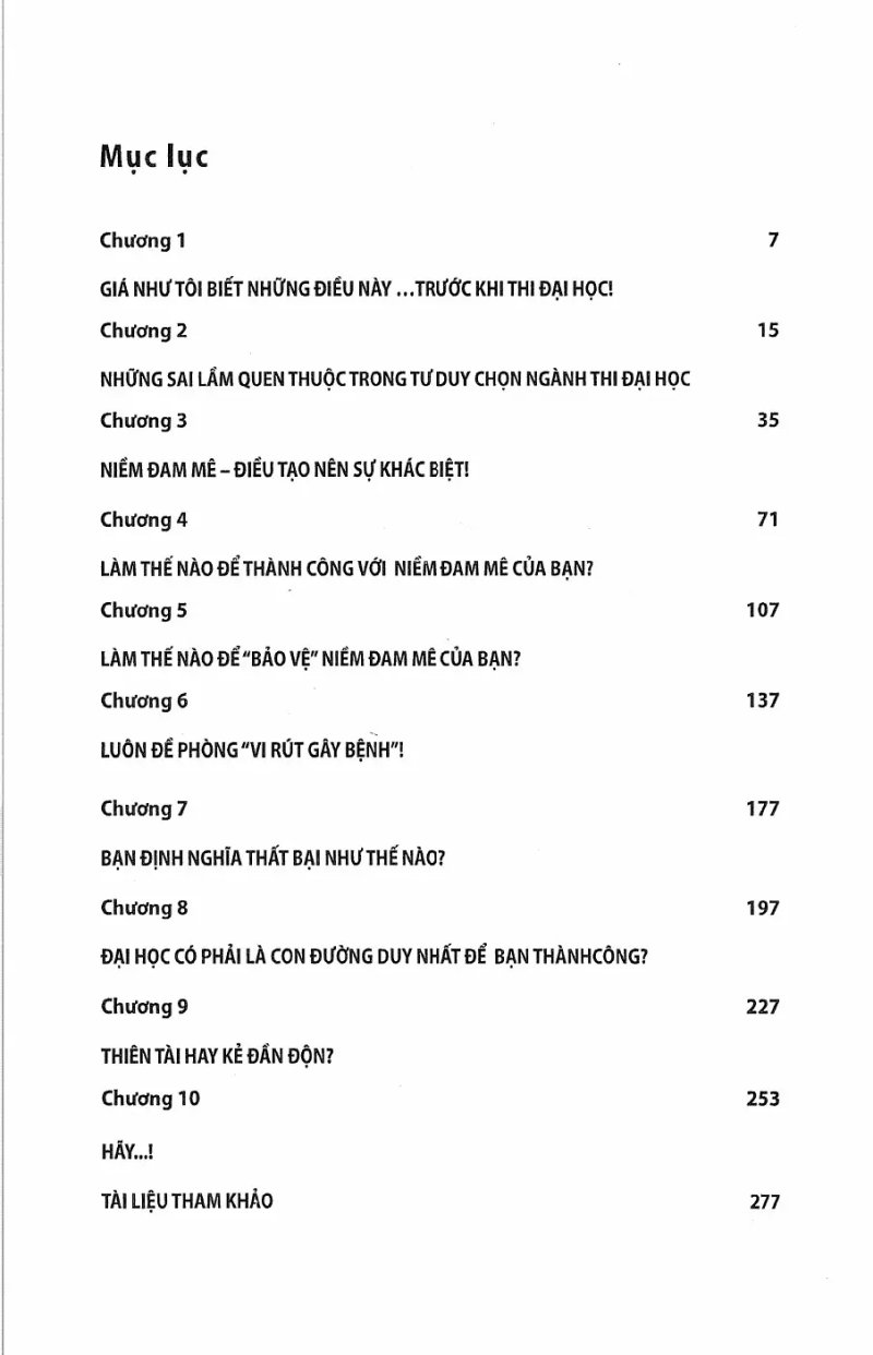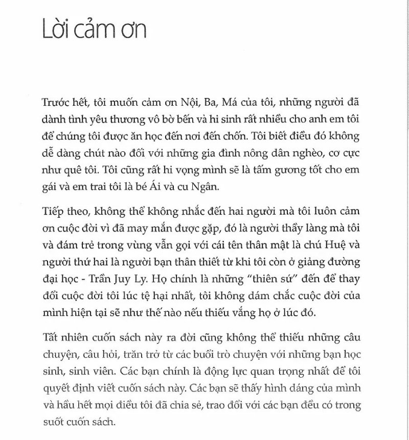Cuốn sách như lời tâm sự của chính tác giả gửi đến bạn đọc những bài học cũng như những kinh nghiệm của chính tác giả, rất chân thực, cùng cới những tấm gương nổi tiếng thế giới. Mình thấy đây là một cuốn sách nên đọc trước khi thi đại học để các bạn hiểu rõ đam mê, vẽ ra mục tiêu tương lai và từng bước thực hiện nó cho chính cuộc sống của mỗi người.