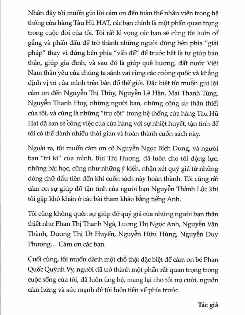 Cuốn sách được chắp bút bởi Đinh Tuấn Ân, một cựu sinh viên Đại học Tài chính Ngân hàng TPHCM. Người quyết định bỏ dở 2 môn học cuối cùng để tốt nghiệp. Người dũng cảm khởi nghiệp vào năm thứ tư của đại học. Thời điểm 2011 vì quyết định đi bán hàng rong. Với món ăn dân giã quen thuộc của người Quảng Ngãi – tàu hũ đường.