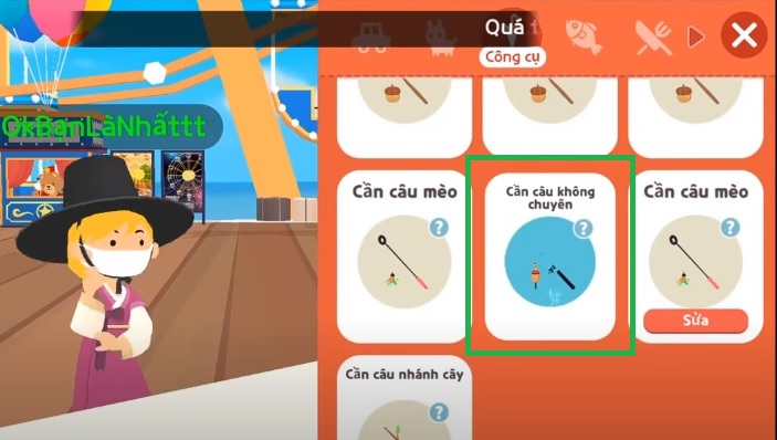 Bước 2: Chọn cho 1 chiếc cần câu để câu cá, ở đây chọn cần câu không chuyên. Nếu bạn nào chưa có cần câu thì đến cửa hàng để mua cho mình một chiếc cần câu.